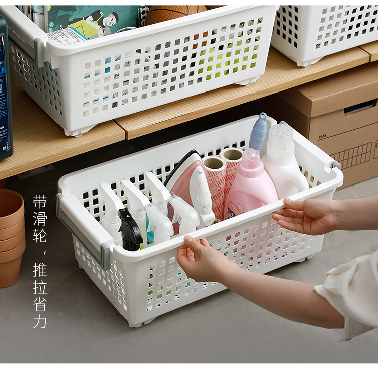 霜山は積み重ねてかごを収めることができます。プラスチックベルトのローラー付きの荷物バスケットは汚い服を持っています。大きなおもちゃの荷物は箱に収められます。