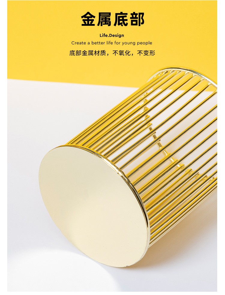 かわいいブラシ収納桶北欧風insアイデア収納筒オフィス文房具収納ペンケースI型ゴールド